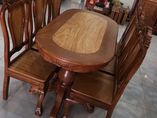 Đảm bảo bạn sẽ bị cuốn hút ngay từ khi chiêm ngưỡng bản mộc của bộ bàn ăn. Toàn bộ các chi tiết đều được làm 100% từ chất liệu gỗ gõ đỏ cao cấp hàng lựa gỗ chọn vân thớ gỗ đanh chắc đảm bảo độ bền đẹp cùng thời gian.