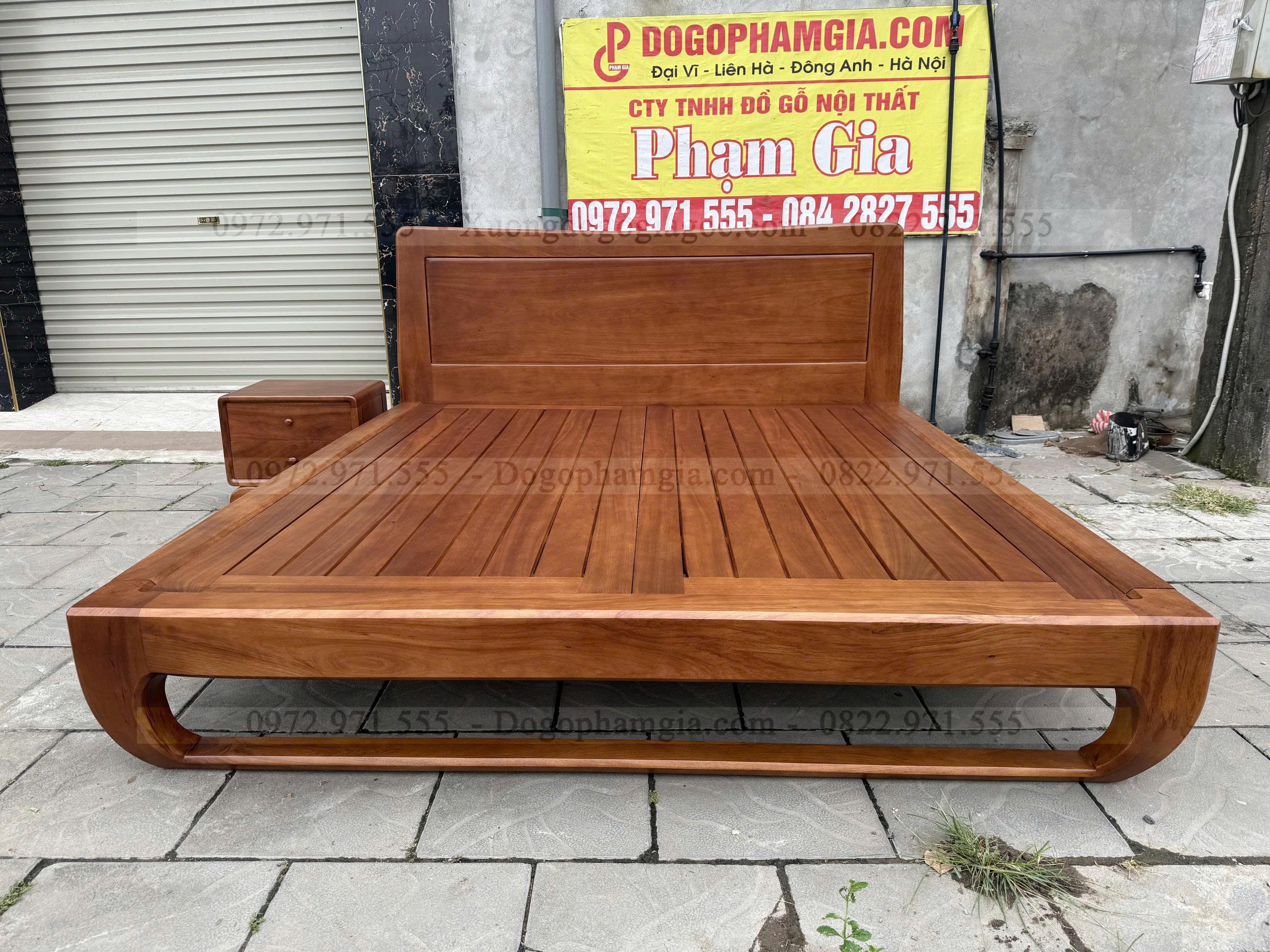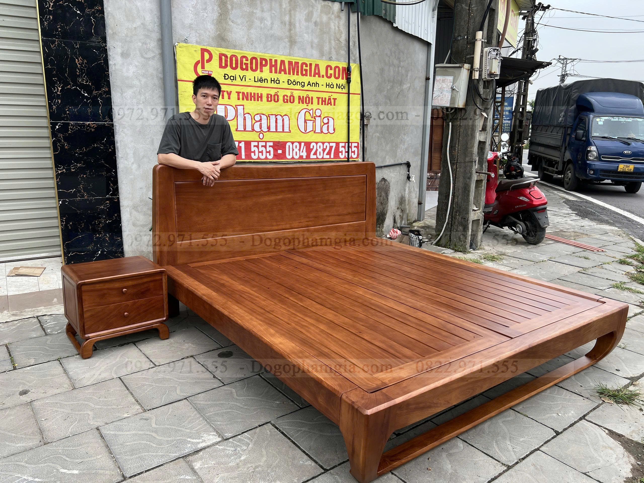 GIƯỜNG HIỆN ĐẠI CHÂN QUỲ GỖ GÕ ( GHD1 ) – THIẾT KẾ HIỆN ĐẠI, ĐẦU GIƯỜNG CAO DỄ VỆ SINH