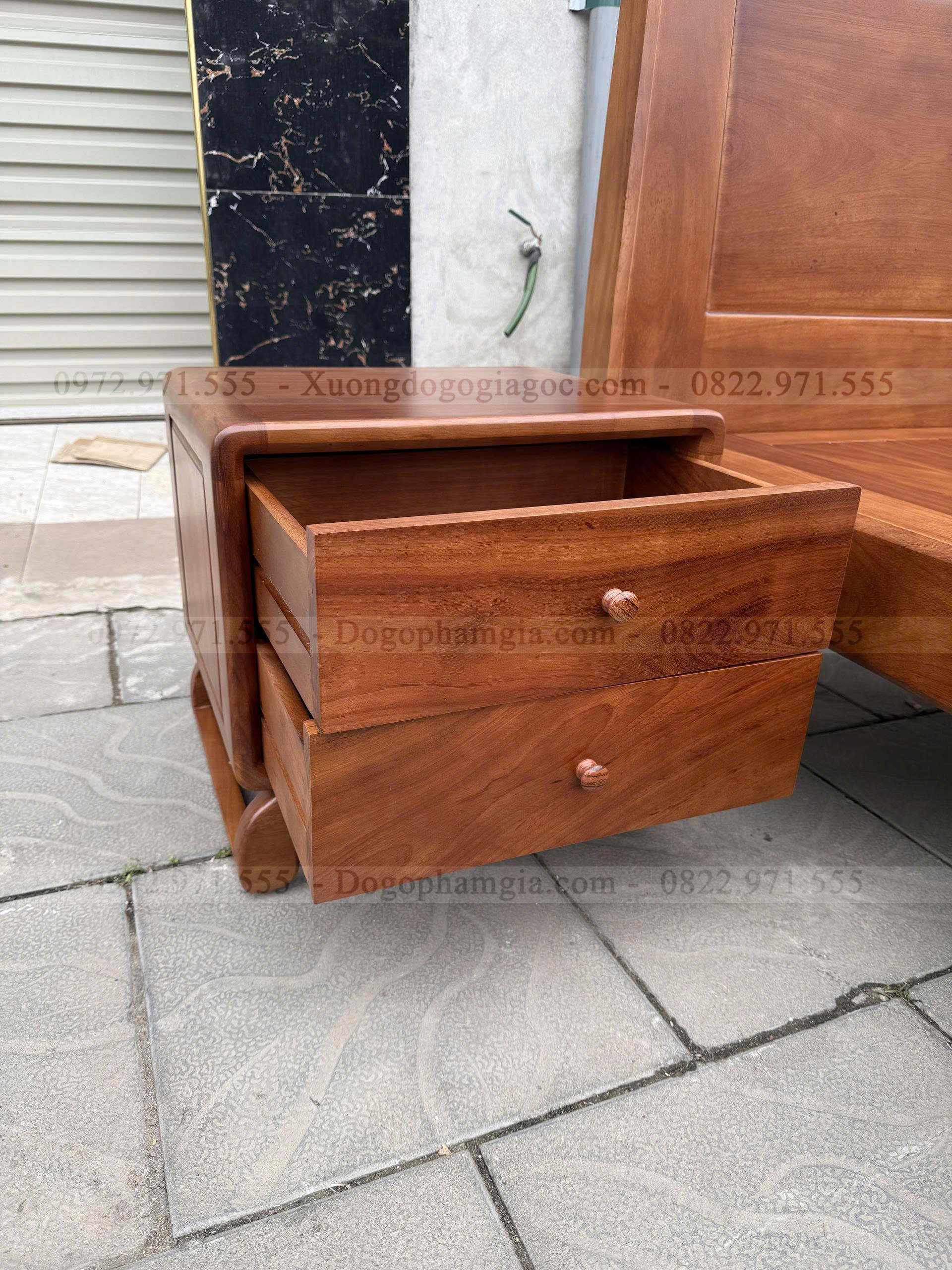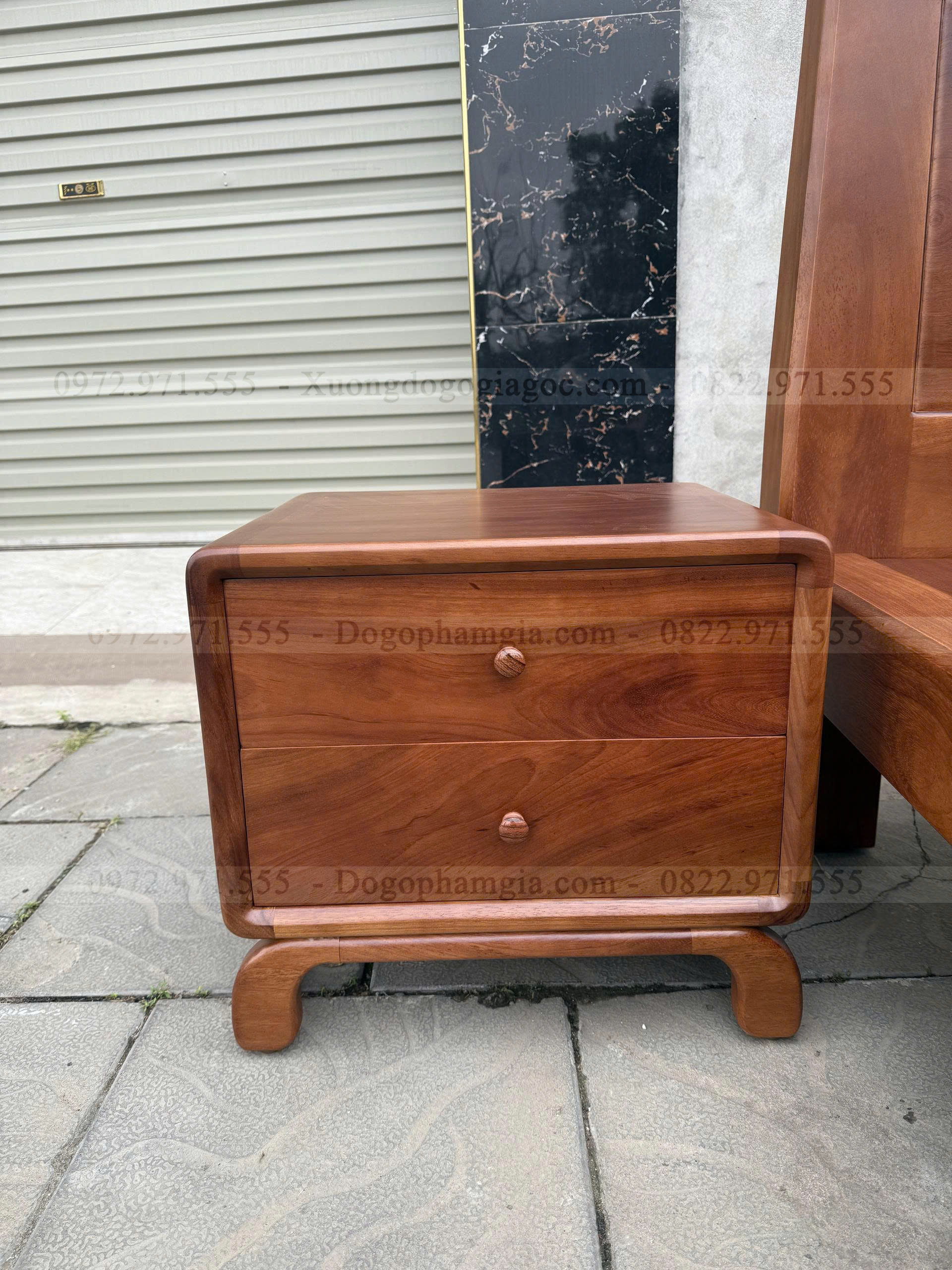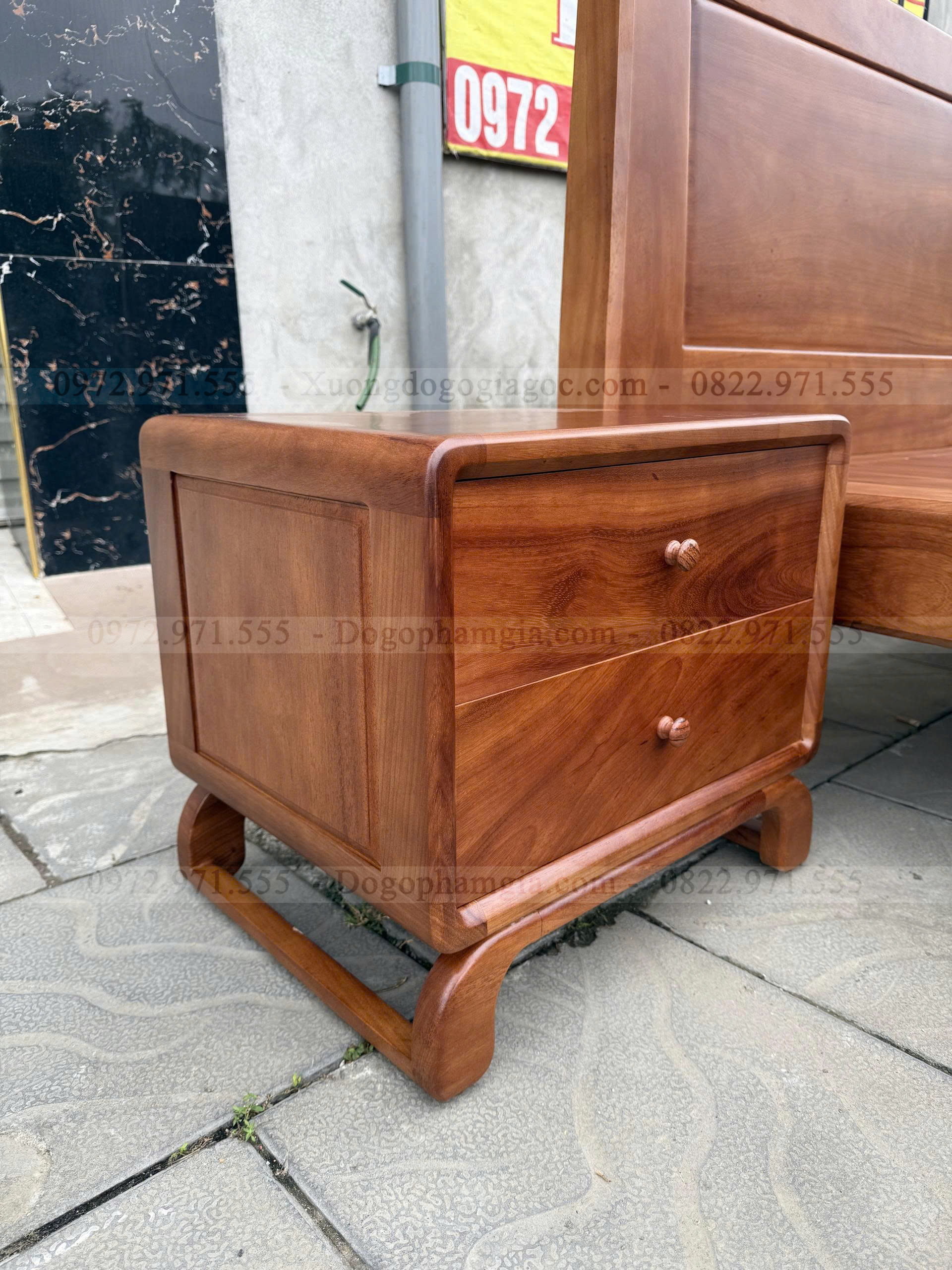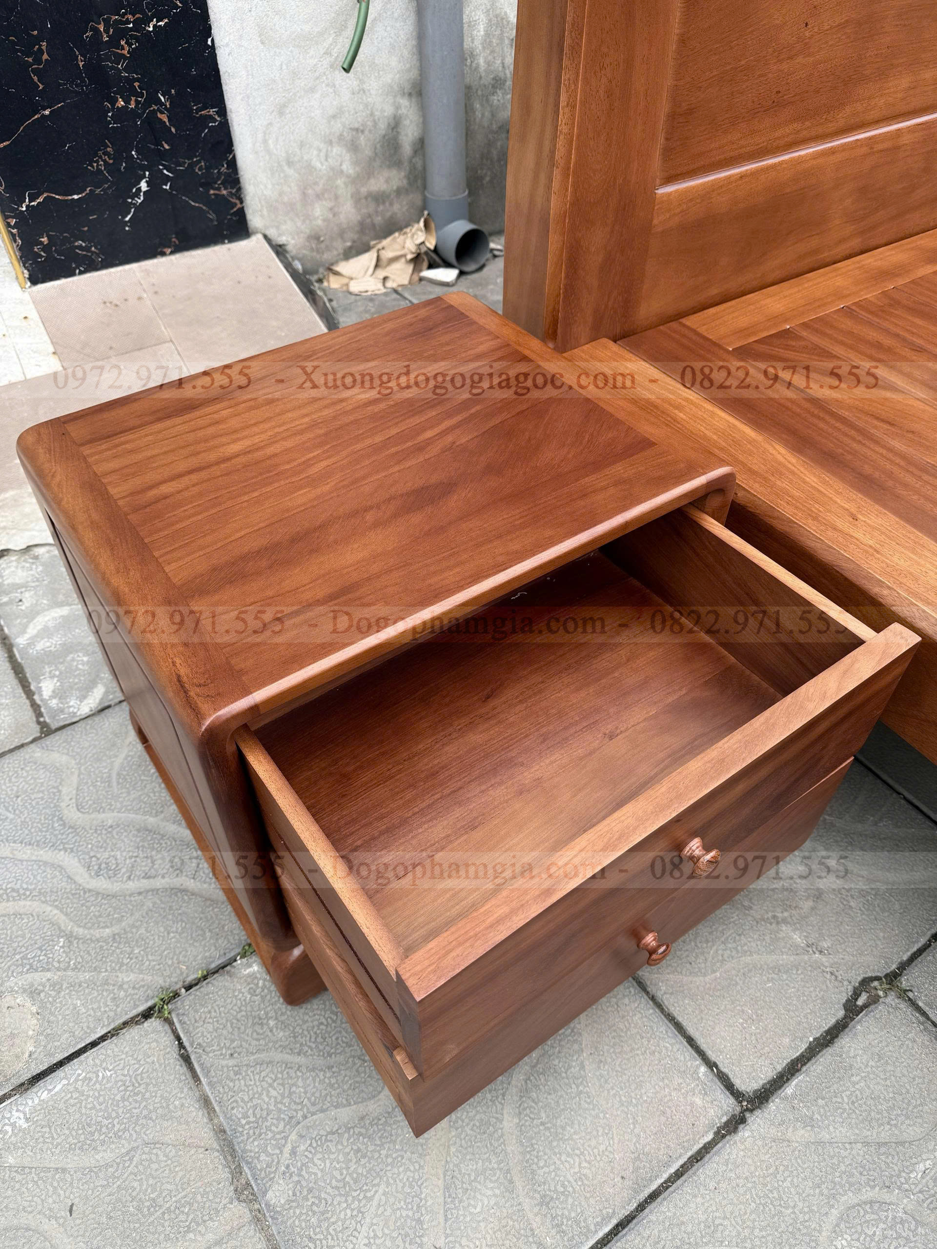 Táp đầu giường được làm cùng kiểu với giường (gỗ gõ đỏ) vừa đẹp mắt vừa tiện dụng.