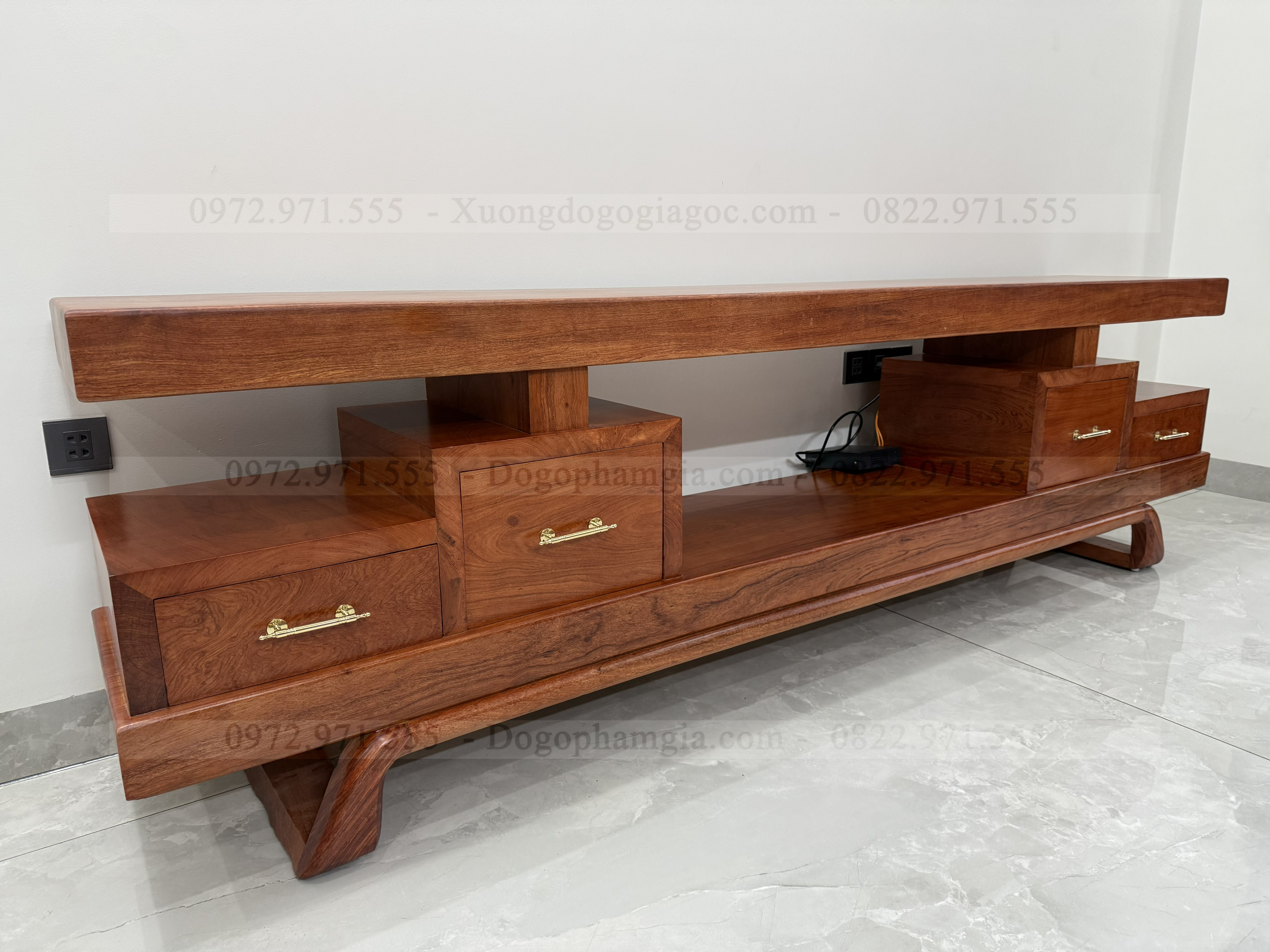 KỆ TIVI NGUYÊN KHỐI CHÂN THUYỀN GỖ HƯƠNG ĐÁ – SIÊU PHẨM ĐỒNG BỘ KHÔNG GIAN SỐNG
