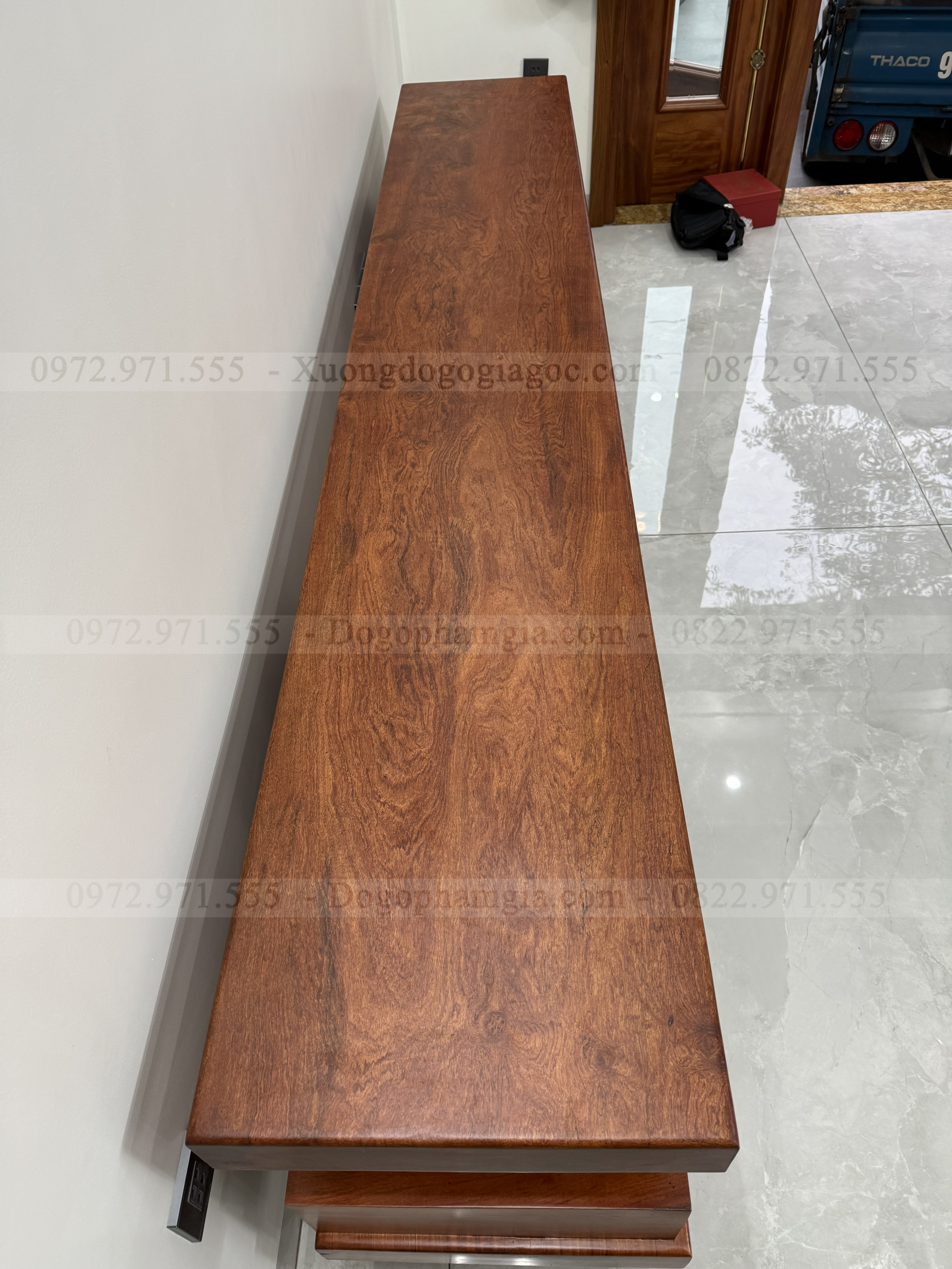 - Hai tảng gỗ nguyên khối dày dặn, vân gỗ liền mạch – nhìn là thấy “chất”