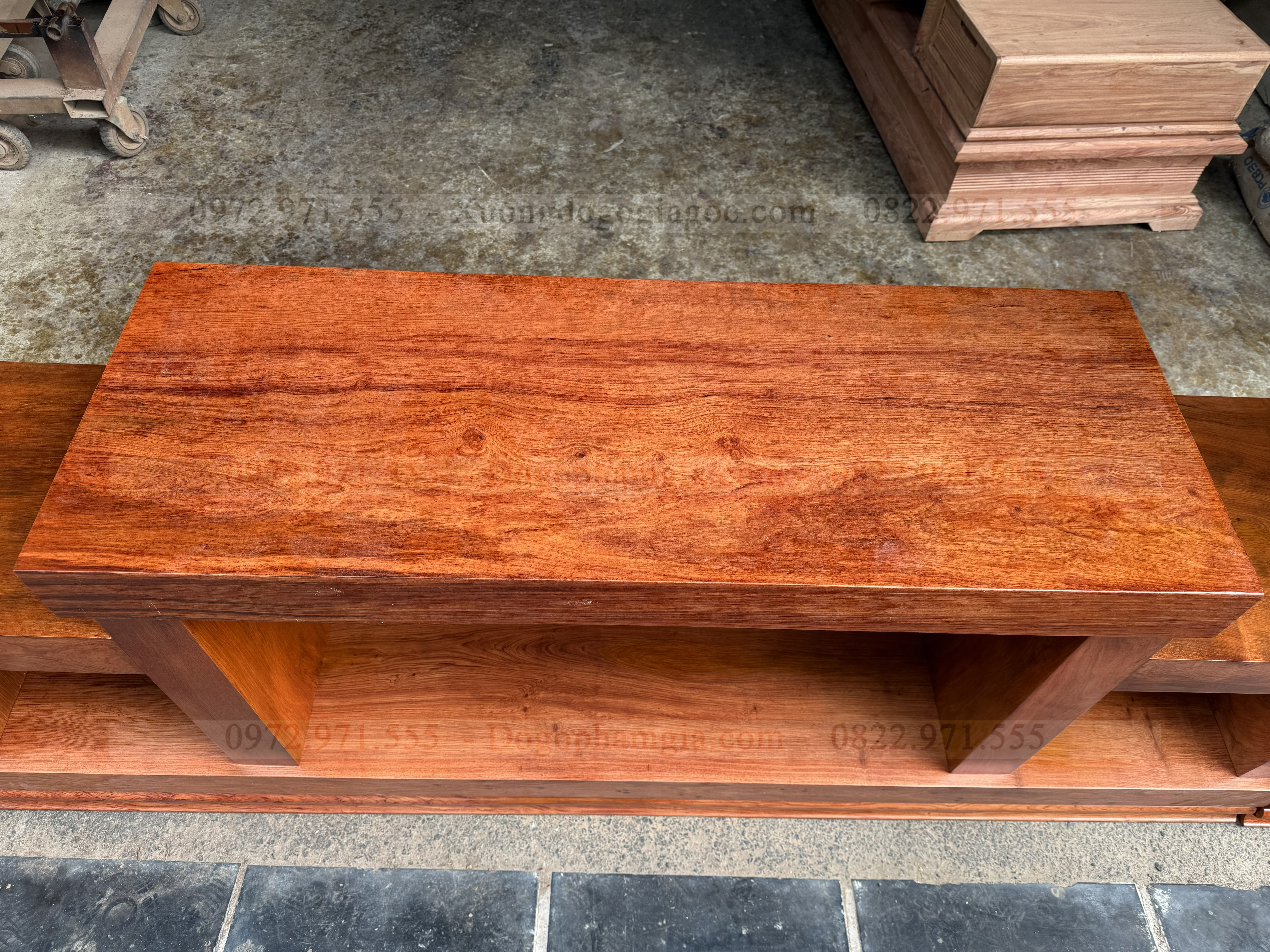 Kệ tivi nguyên khối gỗ hương đá kèm tủ loa (a Hà – Thanh Trì)