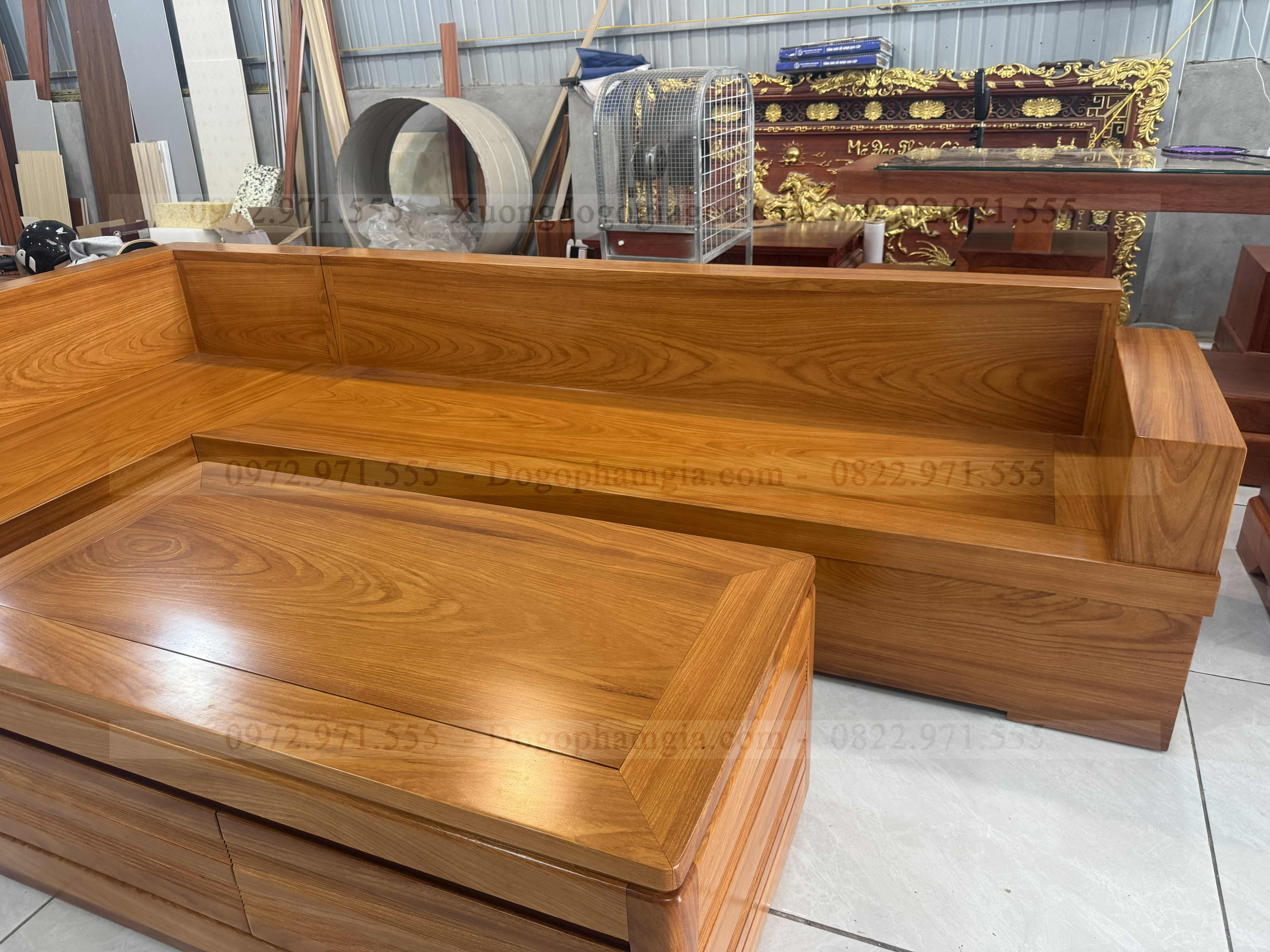 Sofa góc L gỗ gõ đỏ pachy ( SFL1 ) – Thiết kế theo phong cách giả nguyên khối tối giản lại sang trọng bộ Sofa “to” cho phòng khách nhỏ